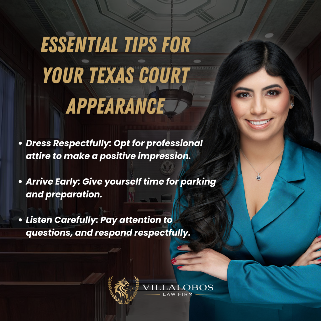 At Villalobos Law Firm, we understand that preparing for a court appearance in Texas can be daunting. Our experienced legal team offers guidance and support to help you feel confident in every aspect of your case. Contact us today for dedicated representation and personalized legal advice.